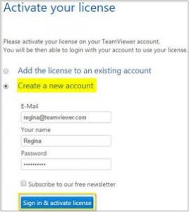 - Log In dengan kredensial akun TeamViewer Anda. Jika Anda tidak memiliki akun TeamViewer, silakan pilih tombol Create a new account dan masukkan informasi pribadi Anda.